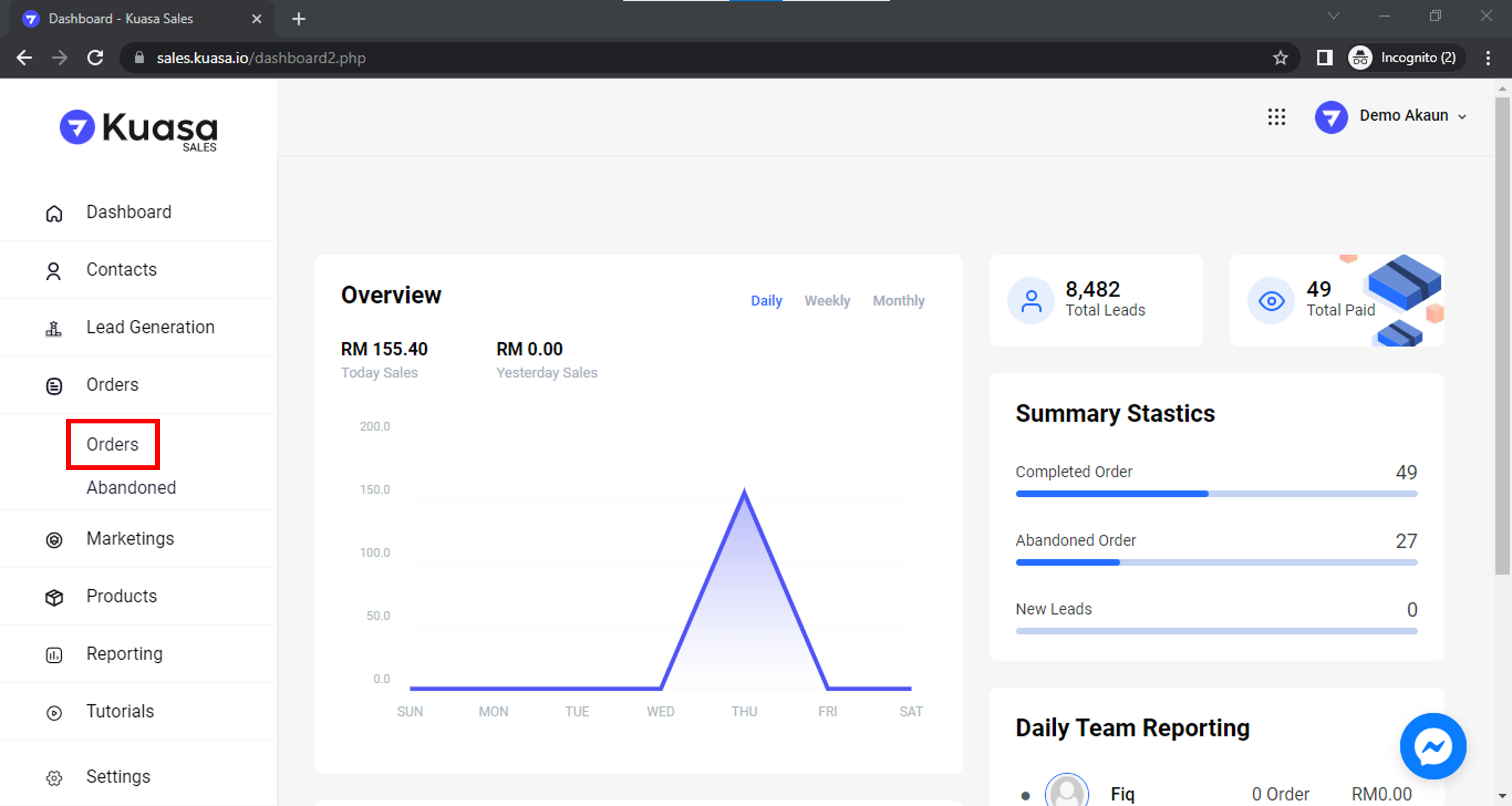 1. Login ke akaun anda melalui [**https://sales.kuasa.io/**](https://sales.kuasa.io/).