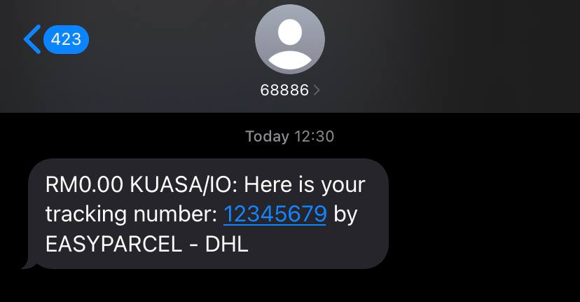 7\. Pelanggan akan terima SMS seperti gambar di bawah.