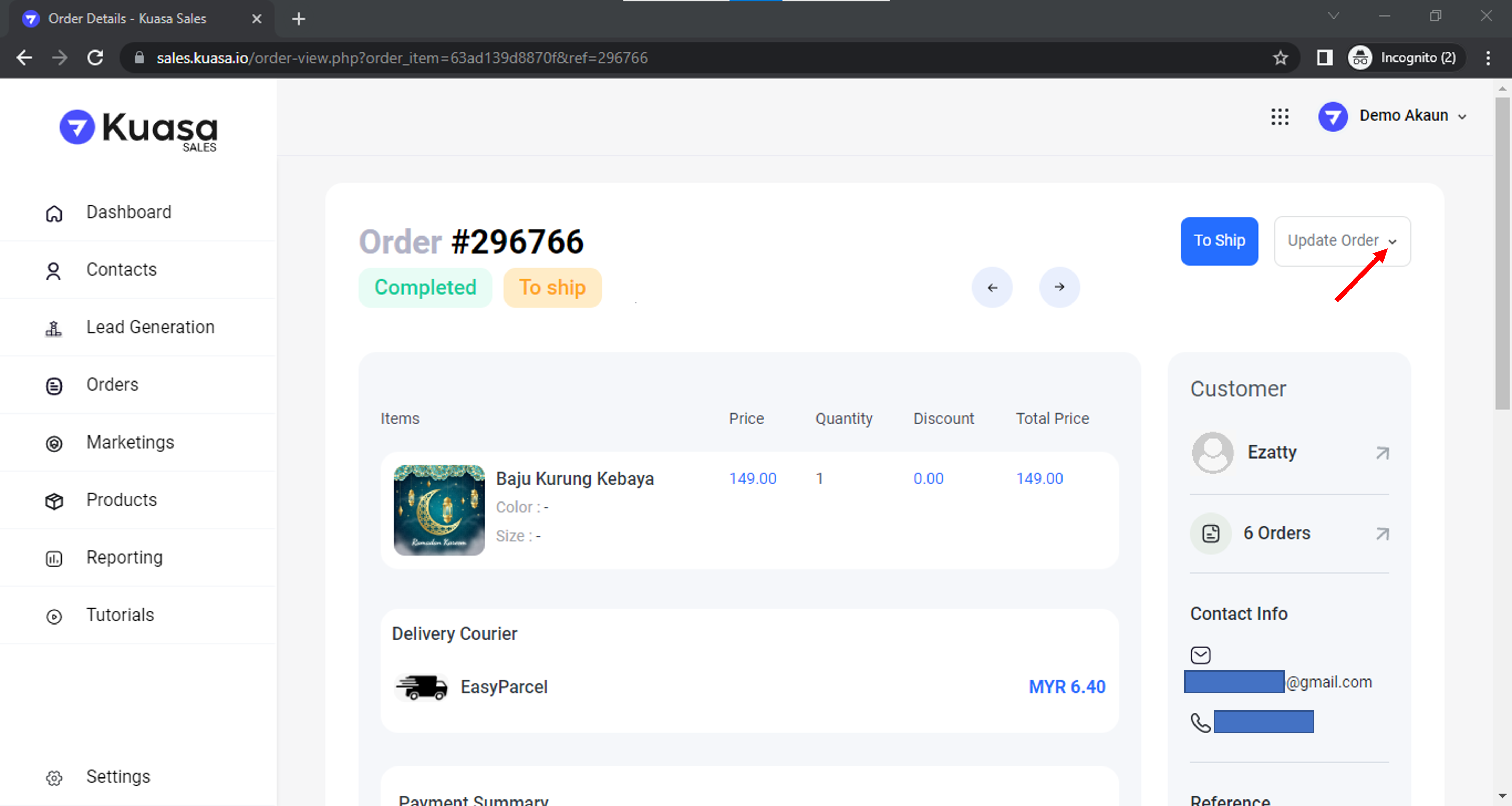 4\. Klik **Update Order**.